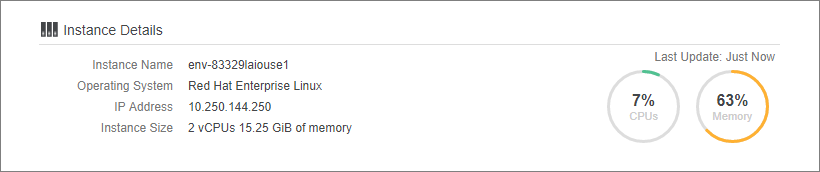 在“实例详细信息”部分,您可以查看有关服务器的总体 CPU 和内存资源消耗情况的详细信息。