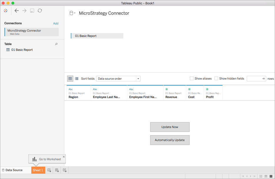 Daten aus MicroStrategy in Tableau importieren