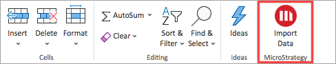 - MicroStrategy for Office 사이드바에서 을(를) 클릭합니다. 데이터 가져오기 .