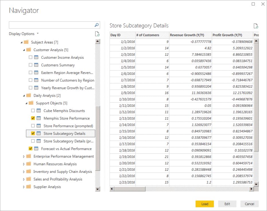 从导航器页面中选择要导入的数据集,然后单击加载。