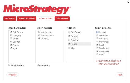 此连接器允许您将 MicroStrategy 项目中的多维数据集和报告的数据集导入 Qlik Sense。您可以导入最多包含两百万行和十多列的数据集。