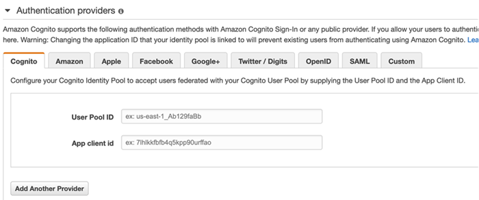 2. Complete the User Pool ID and App Client ID fields as described in the Configure Cognito User Pool section.