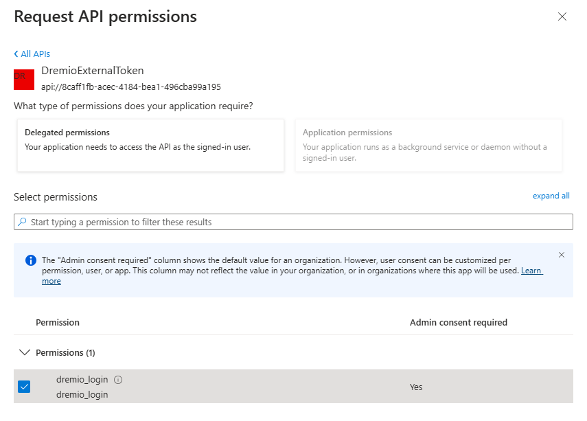 Configure a Microsoft Entra ID application for Dremio OAuth to add the additional permission for Dremio.