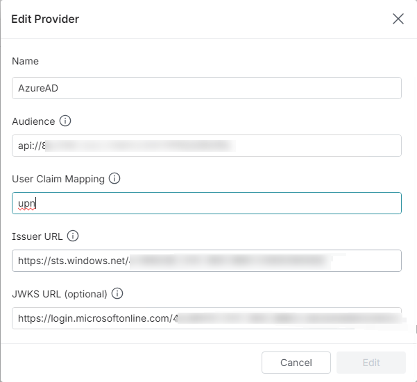 Click Add Provider and type the following IdP details: