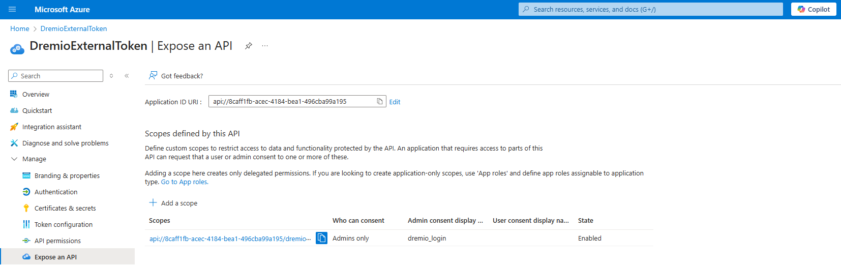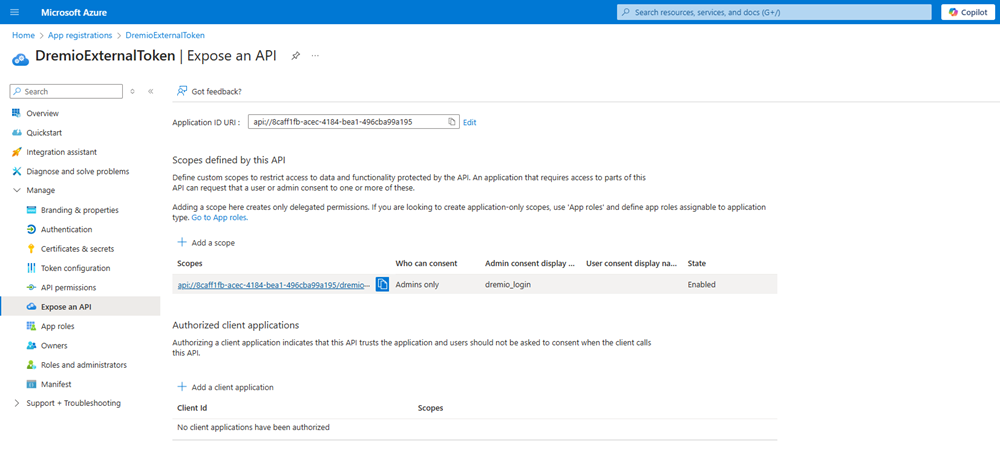 In the left pane, click Expose an API under Manage.