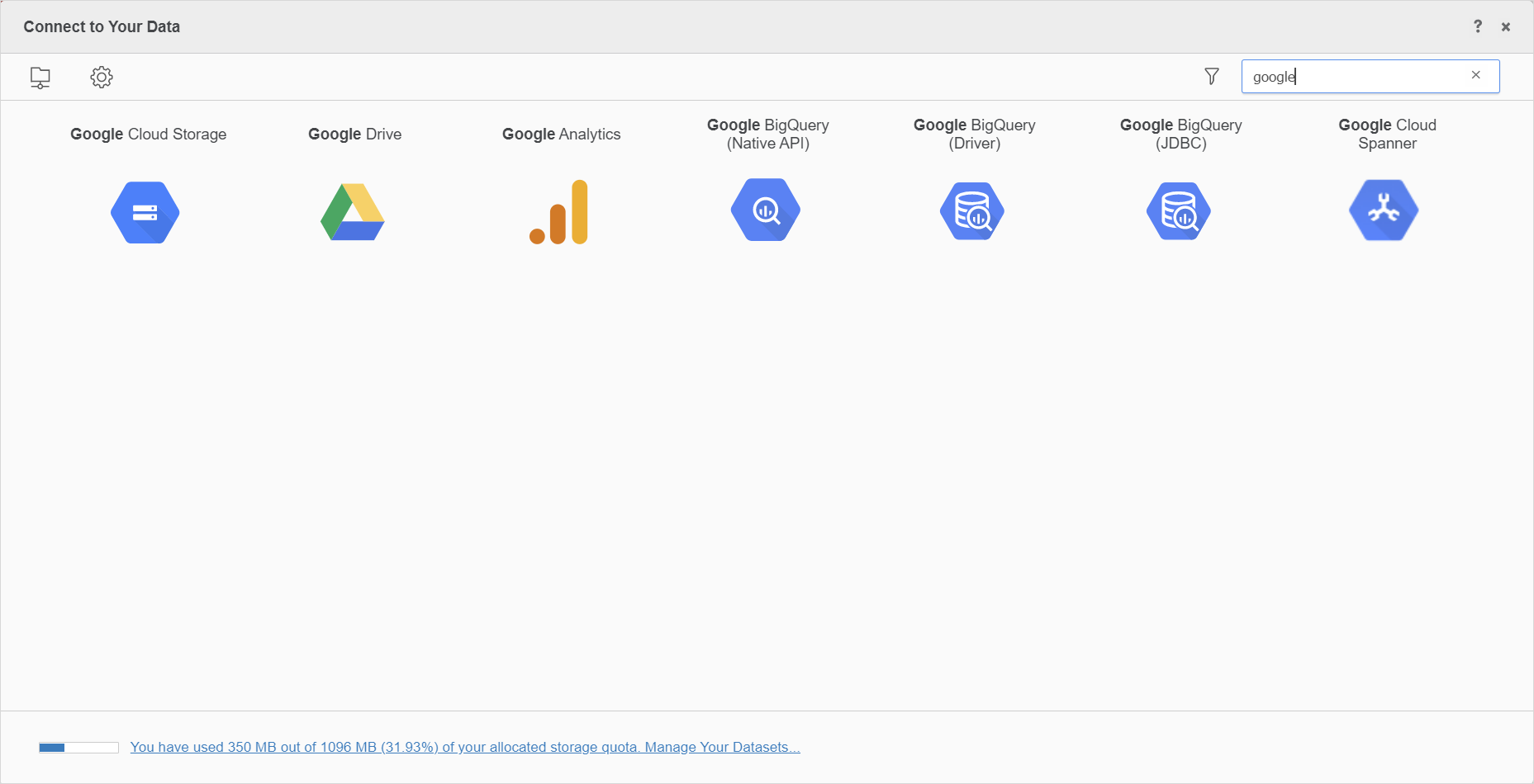 Search for and select the Google BigQuery (Driver) for ODBC or Google BigQuery (JDBC) driver.