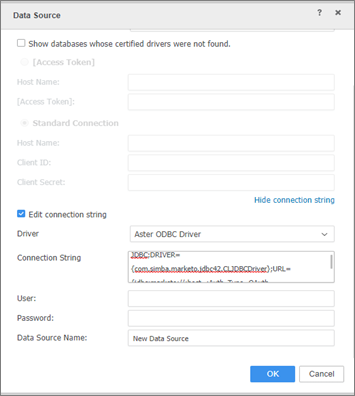 - Edit the Connection String: Click Show connection string and select Edit connection string. Enter the connection information of the JDBC connection string to connect.