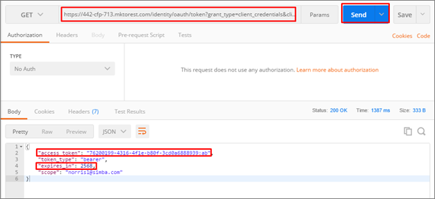 https://<identityURL>/oauth/token?grant_type=client_credentials&client_id=<Client ID>&client_secret=<Client Secret> -
