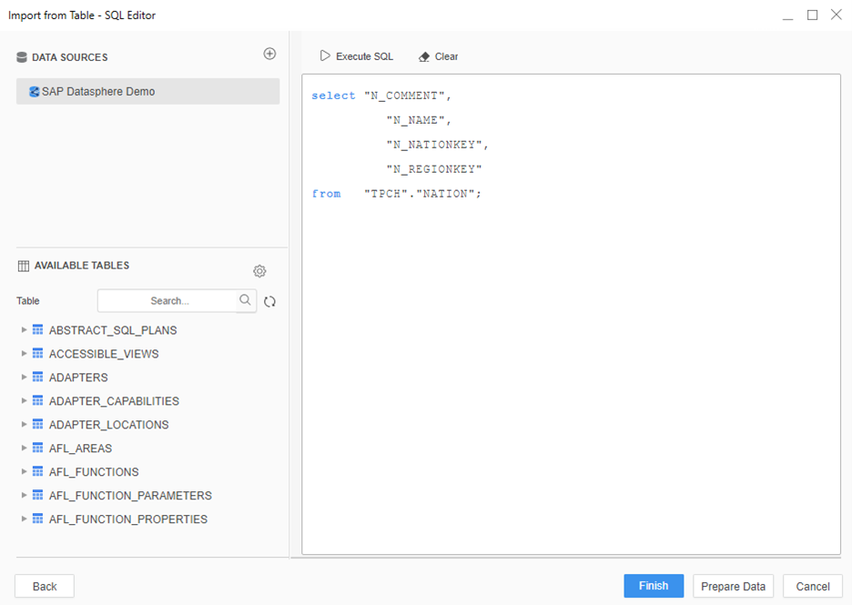 - Click the data source to connect to SAP Datasphere.