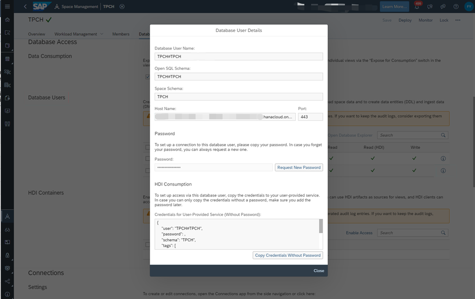 - Go to Space Management > Your Namespace > Database Users