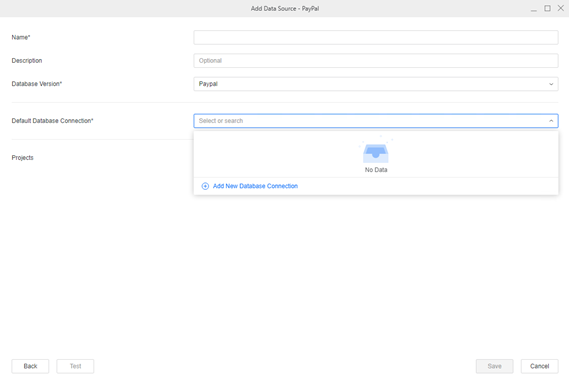 - In the Add Data Source dialog, choose a Project to assign and access the data source.