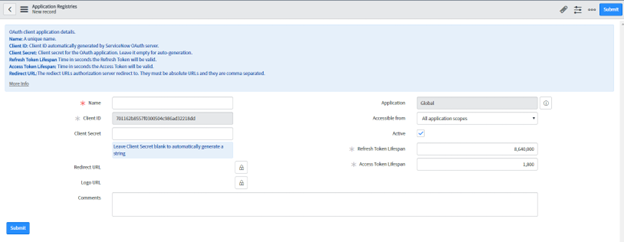 - Submit the request to get the Client ID and Client Secret connection parameters.