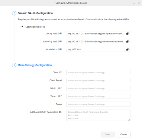 oAuth: Select an existing service or click Add New Authentication service. If you add a new Authentication Service: