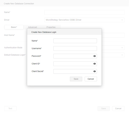 DRIVER={MicroStrategy ServiceNow ODBC Driver}; Host=@hostname;Auth_Type=OAuth 2.0;Auth_Client_ID=@client; Auth_Client_Secret=Client_secret ;UID=@username;PWD=@password