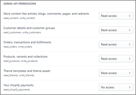 You can change permissions of tables through your Shopify store account. You can set these permissions while creating a new private app or change them any time after the app has been created.