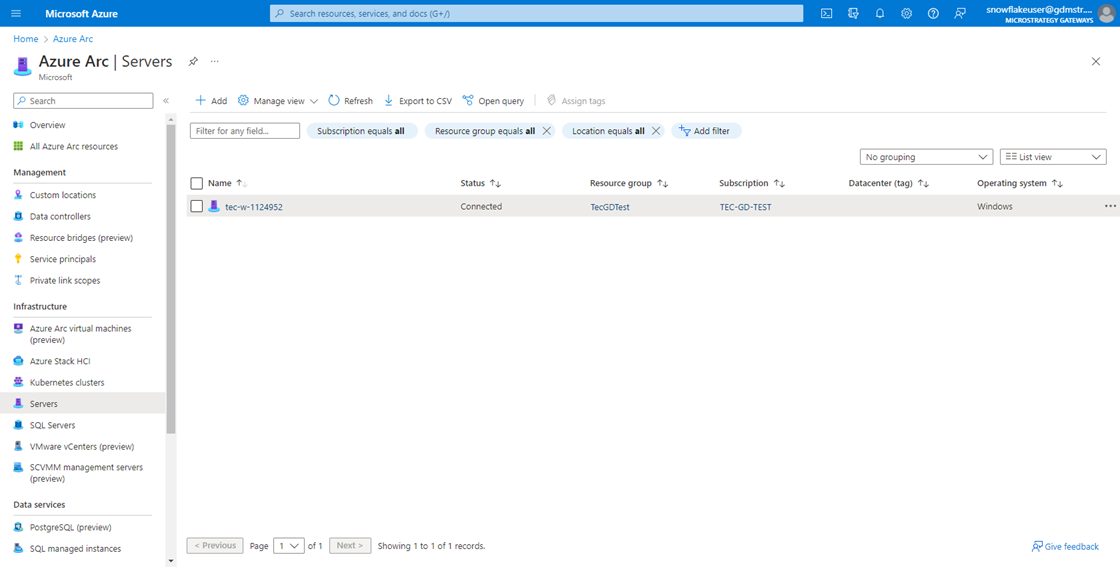 In the Microsoft Azure Arc left navigation, under Infrastructure, click Servers and verify the server is available.