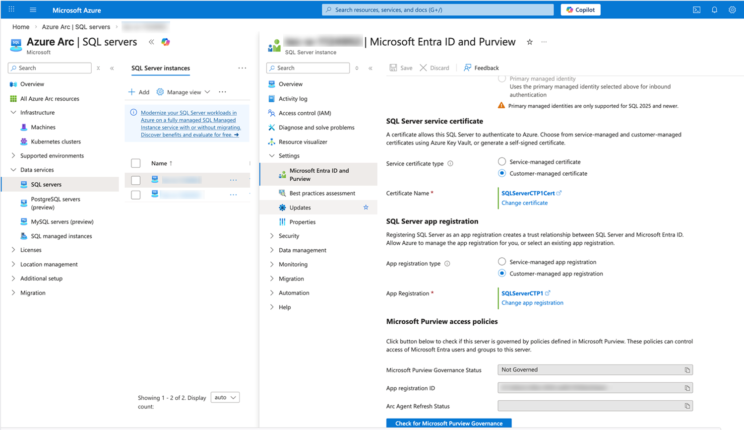 In SQL Server app registration, next to App registration type, select Customer-managed app registration.