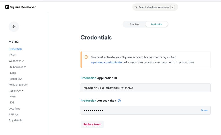 See How to Get Credentials for Square for steps to acquire the correct parameters.