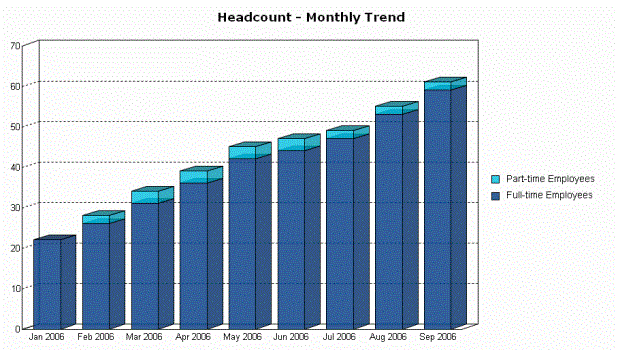 Use this report to get an overview of the number of part-time and full-time employees in the company over time. You can select the years to view.