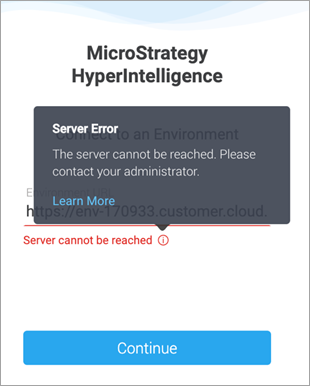 L'URL que vous avez saisie n'appartient pas à un serveur MicroStrategy Library Web valide. Assurez-vous que votre URL contient