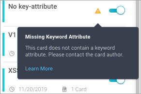 Questo errore viene visualizzato quando si abilita una scheda che non dispone di un attributo parola chiave. Per utilizzare HyperIntelligence, le schede richiedono un attributo parola chiave. Per istruzioni, vedere Creazione di schede