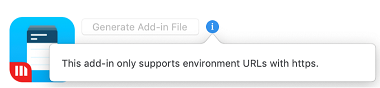Il componente aggiuntivo è disabilitato quando si tenta di generare un file manifesto da un ambiente con un URL HTTP. È necessario utilizzare un ambiente che inizia con un URL HTTPS. Se l'ambiente utilizza un URL HTTPS e il pulsante rimane disabilitato, verificare che il server Library sia la versione 2019 Update 2 o superiore e che Intelligence Server sia la versione 2019 o successive.