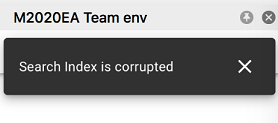 Questo errore viene visualizzato quando si cerca una scheda con l'indice di ricerca del progetto in uno stato danneggiato. Contattare l'amministratore per ricostruire l'indice di ricerca per il progetto. Per i passaggi, vedere Come ricostruire l'indice della ricerca rapida.