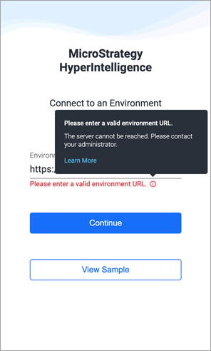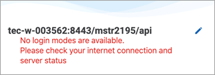 O URL inserido não pertence a um servidor do MicroStrategy Library Web válido. Certifique-se de que sua URL contém