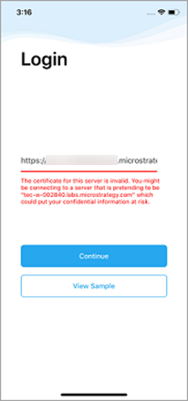- 当连接到 Intelligence Server 发生故障的环境时。请联系您的管理员以确保 Intelligence Server 正在运行且可访问。