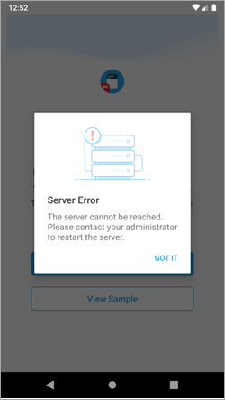 - 当连接到库服务器发生故障的环境时。联系您的管理员以确保库服务器正在运行且可访问。