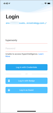 更新 HyperIntelligence for Mobile 应用程序后,您可能会看到这些错误。这是因为 MicroStrategy 2019 Update 2 中为各种 HyperIntelligence 产品引入了新的权限。更新后的应用程序将检查名为“HyperIntelligence for Mobile”的新权限使用 Hyper Mobile。请联系您的管理员以获取此权限。有关每项特权及其相关许可的说明,请参阅按许可证类型划分的权限。