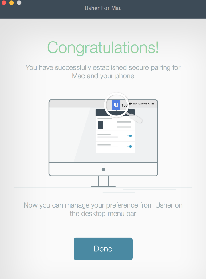 UsherForMac.pkgand follow the instructions on the screen. - Pair computer with device: