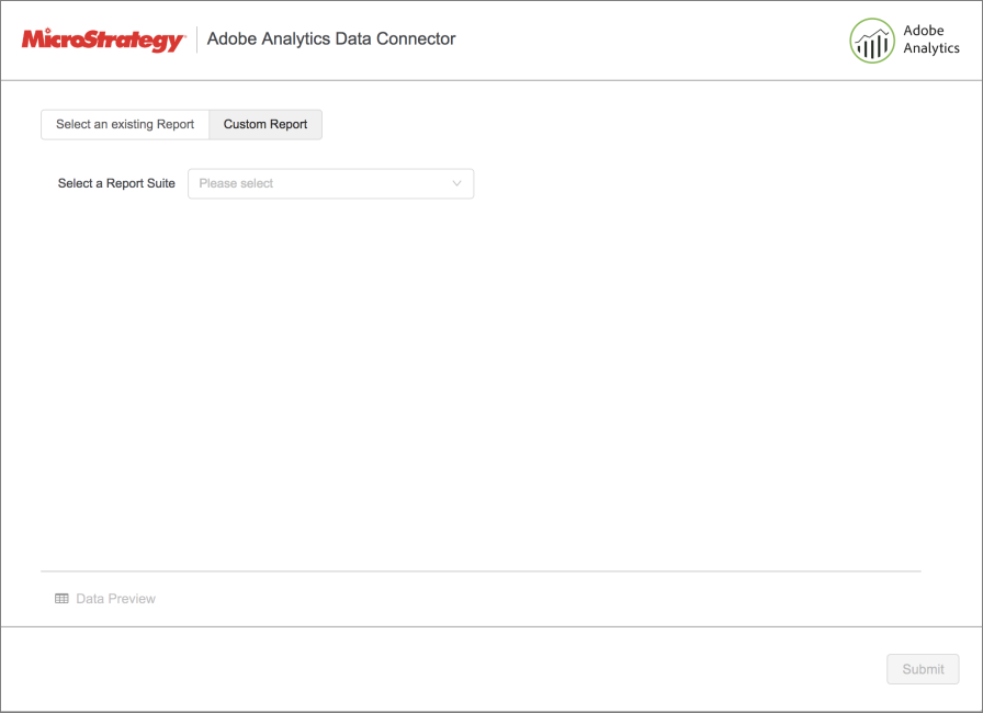 Starting in MicroStrategy ONE Update 12, you can use the Adobe Analytics as part of the neue Datenimport-Benutzeroberfläche. Wenn Sie eine Version vor MicroStrategy ONE Update 12 verwenden, lesen Sie Adobe Analytics-Konnektor vor MicroStrategy ONE verwenden Update 12.