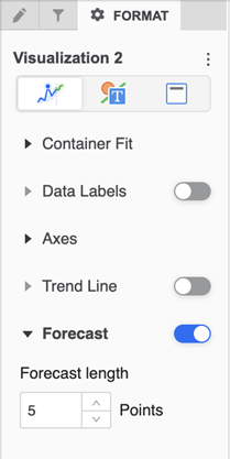 6. Il numero predefinito di punti previsti è cinque. Per modificare questo numero, accedere al riquadro Formato e fare clic su Opzioni di visualizzazione . In Lunghezza previsione modificare il numero di punti previsti. Il numero massimo di punti previsti è 100.