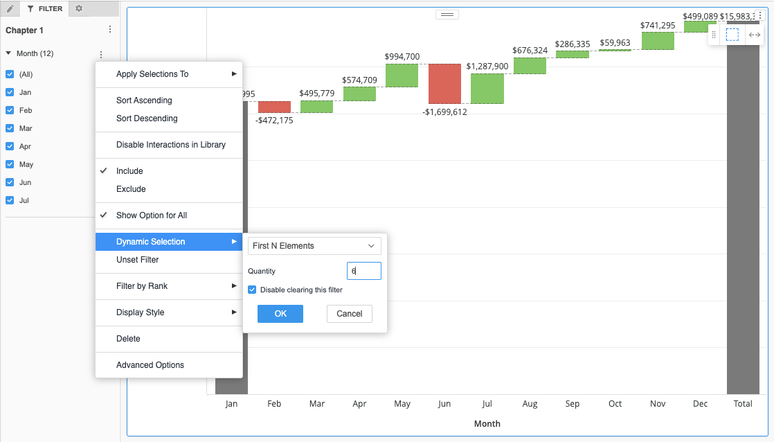 next to the filter and choose Dynamic Selection. - Choose First N Elements or Last N Elements based on your requirements.