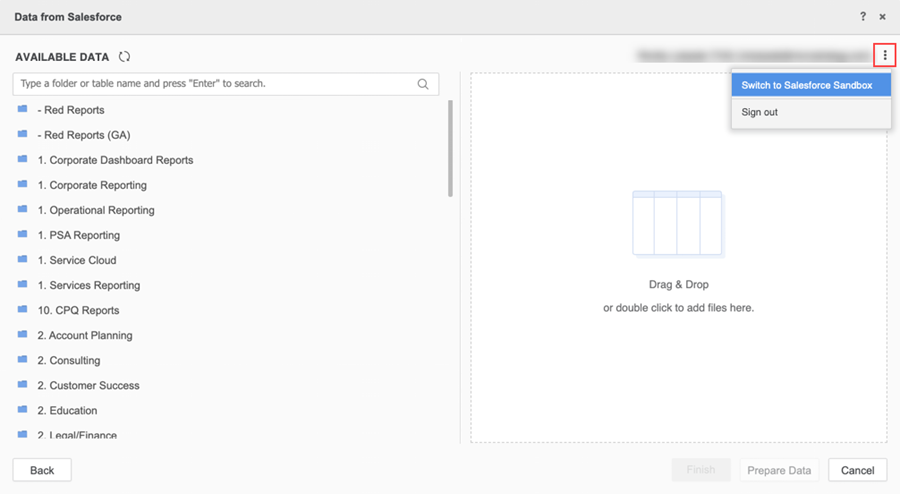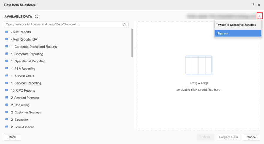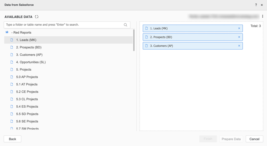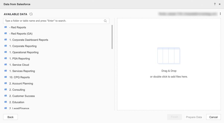Click Prepare Data if you are adding a new dataset and want to preview, modify, and specify import options.