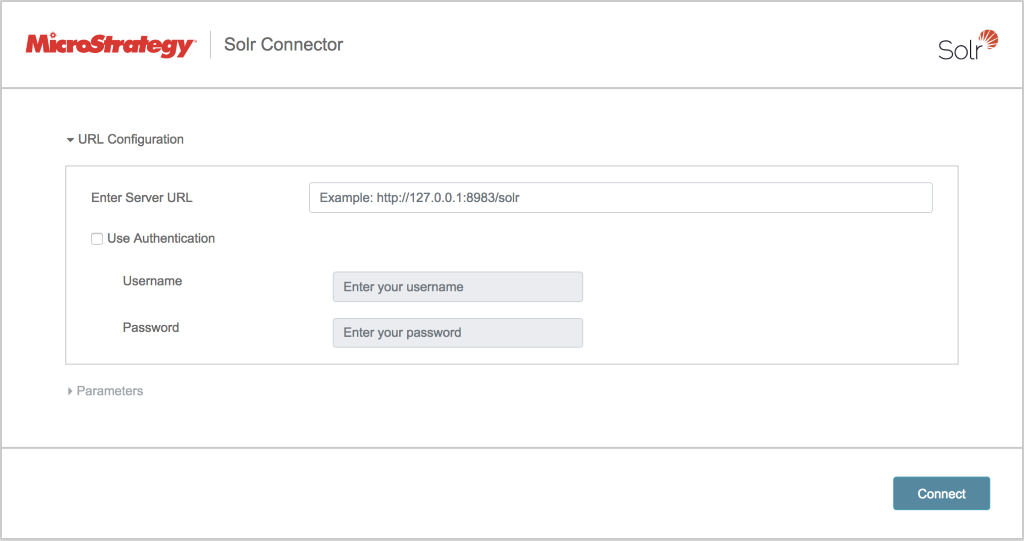 Starting in MicroStrategy ONE Update 12, you can use the Solr connector as part of the new data import experience. If you are using a version earlier than MicroStrategy ONE Update 12, see Use the Solr Connector Before MicroStrategy ONE Update 12.