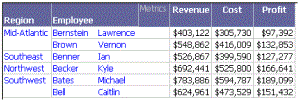 The report displays the revenue of only those employees whose last names begin with the letter B.