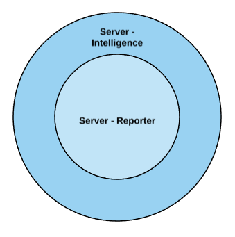 Similar to the Client product license types, the Server - Intelligence and Server - Reporter license are organized into a hierarchy that allows users to inherit certain privileges. In this hierarchy, the Server - Reporter license is a subset of the Server - Intelligence license.
