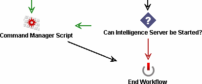 When the workflow completes, the same exit process returns the exit code either on the decision process that determines if Intelligence Server can be started, or the process that completes a Command Manager script.