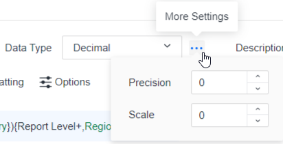 Some data types allow you to format them. For example, if you choose Binary, you can set the Byte Length; if you select Decimal you can set the Precision and Scale. When formatting is available, the More Settings (three dots) icon