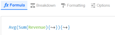 Avg(Sum(Revenue) {~+, Category}) {~+, Region}