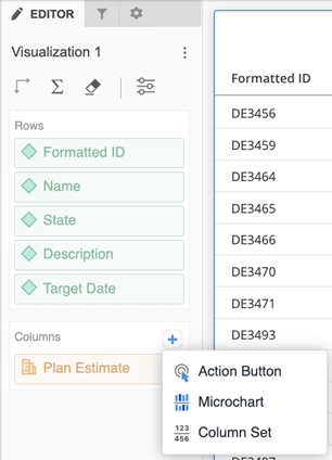 In the Editor panel, next to Columns, click