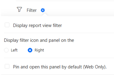 • Starting in MicroStrategy 2021 Update 12, you can display the Filter icon and panel on the left or right side in Library Web and Mobile. In the Settings pop-up, click the location.