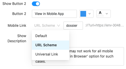 When you configure the button to open in Mobile, users on a mobile email client can deep link directly to the Mobile application using a specific URL scheme or universal link.