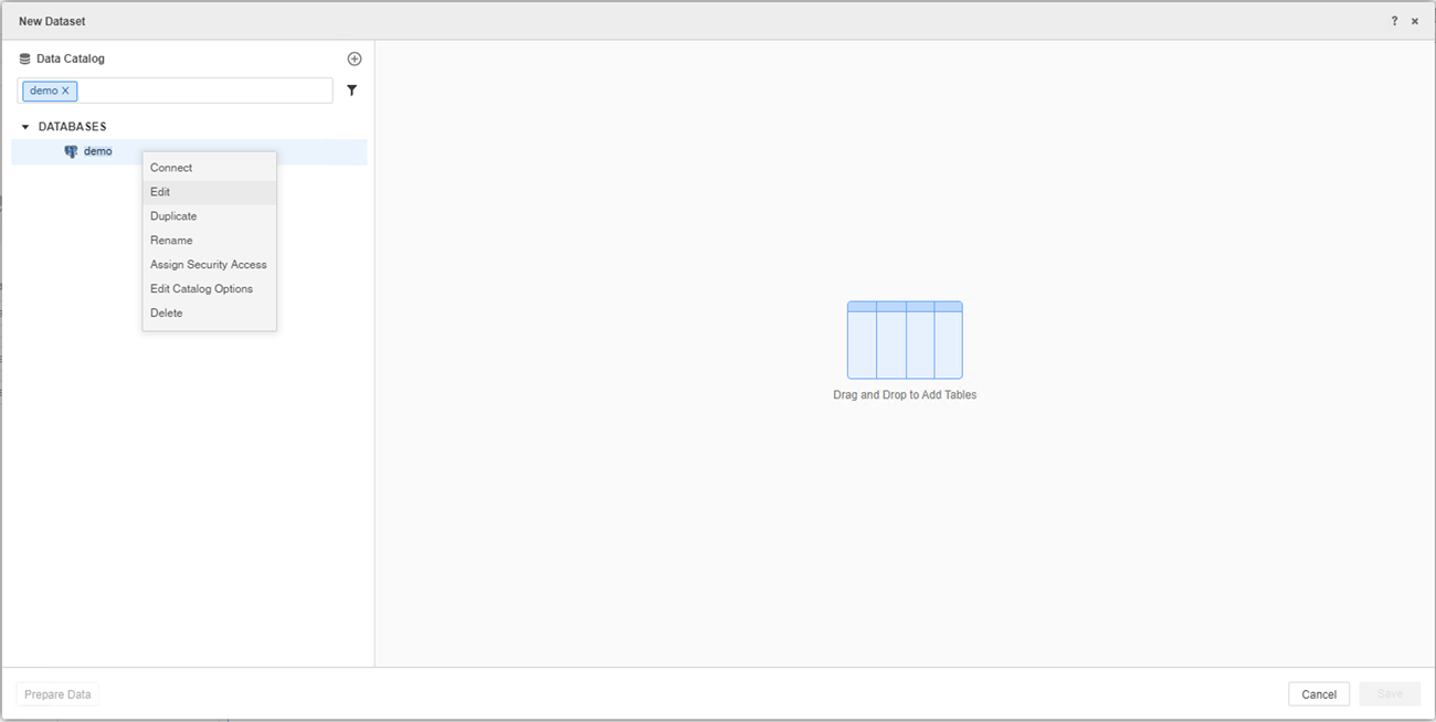 Right-click the new data source for additional options to manage or edit it.