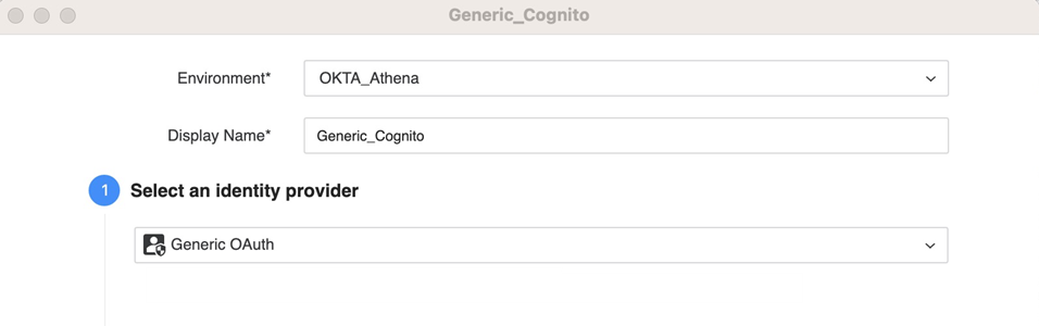 Select the Generic OAuth IdP type and register the Strategy environment as an application with the provided Login Redirect URIs.