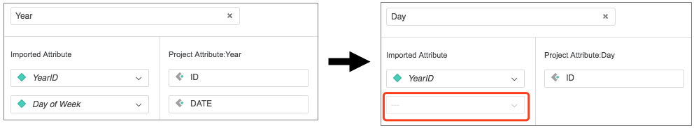5. You may have mapped imported attributes to a project attribute with multiple forms. When you edit this mapping, you can switch to a project attribute that contains fewer forms. However, some forms may be automatically ignored if the number of project attribute forms are less than previously selected.