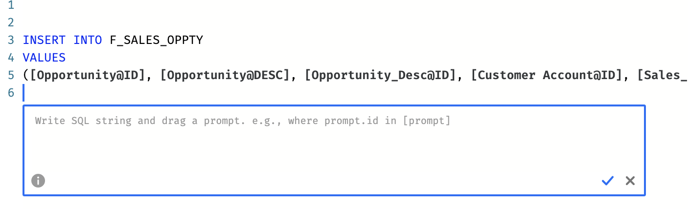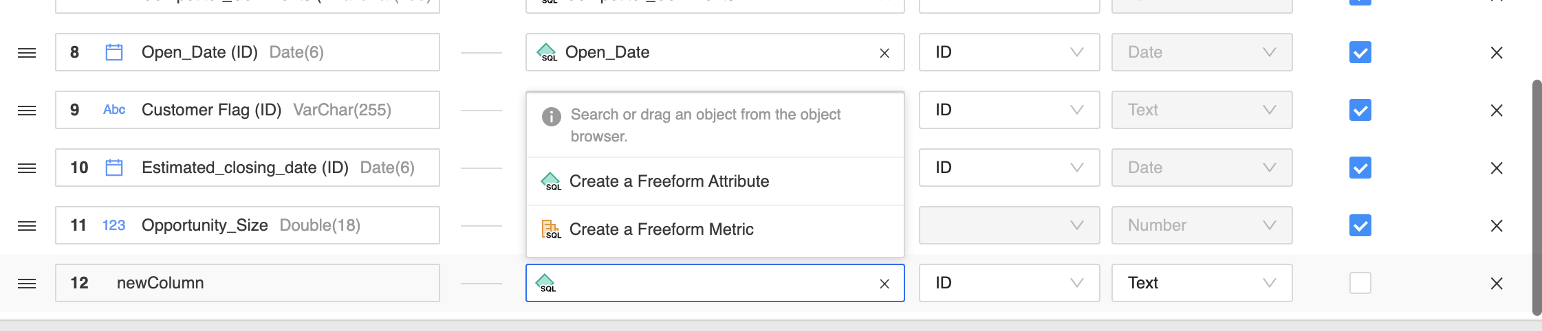 Right-click in the SQL Editor to define new input for transactions with either an existing attribute or metric, or by creating one.