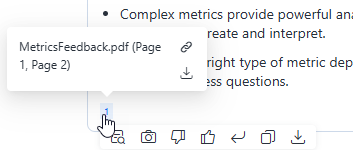 Determine whether the unstructured data file displays as a reference in an agent's response. In the example shown below, the PDF file is used to answer the question and displays as a reference. If the file is not used as a reference, the annotation does not display.